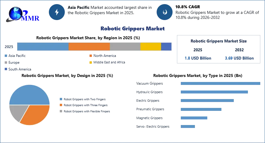 ROCKVILLE , MD, UNITED STATES, April 22, 2026 /EINPresswire.com/ — According to Maximize Market Research, the Robotic Grippers Market is projected to grow from USD 1.8 billion in 2025 to USD 3.69 billion by 2032, registering a CAGR of 10.8% during the forecast period (2025–2032).