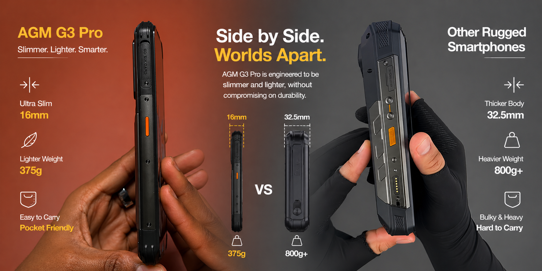 AUSTIN, TX, UNITED STATES, April 30, 2026 /EINPresswire.com/ — AGM Mobile highlights one of the most appreciated features of its flagship AGM G3 Pro: its surprisingly slim and ergonomic design that delivers true rugged performance without the bulk and excessive weight common in many competing rugged smartphones.